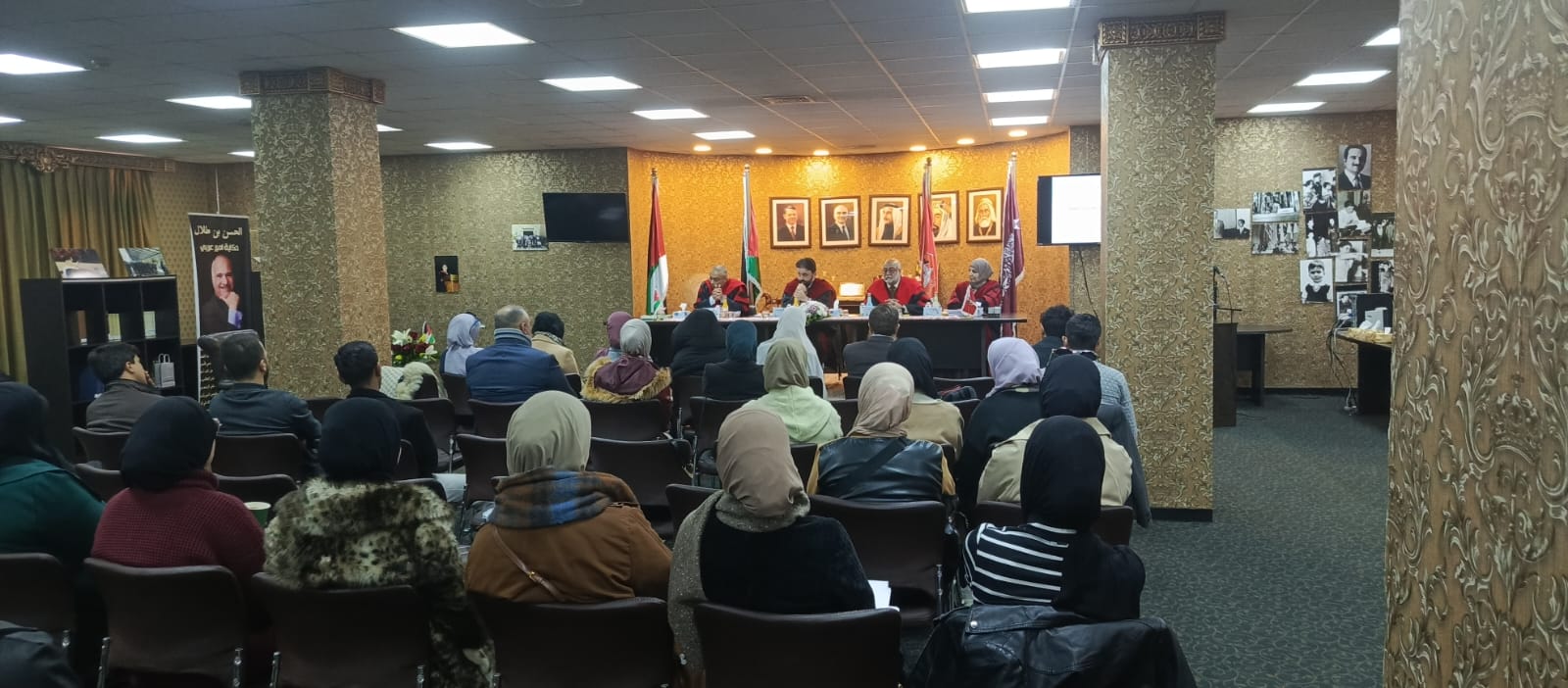 وحضر المناقشة مدير وحدة المكتبة الأستاذ الدكتور عبد الرحمن الغويري وعدد من مدراء دوائر وموظفي المكتبة وبعض الضيوف من داخل وخارج الجامعة.