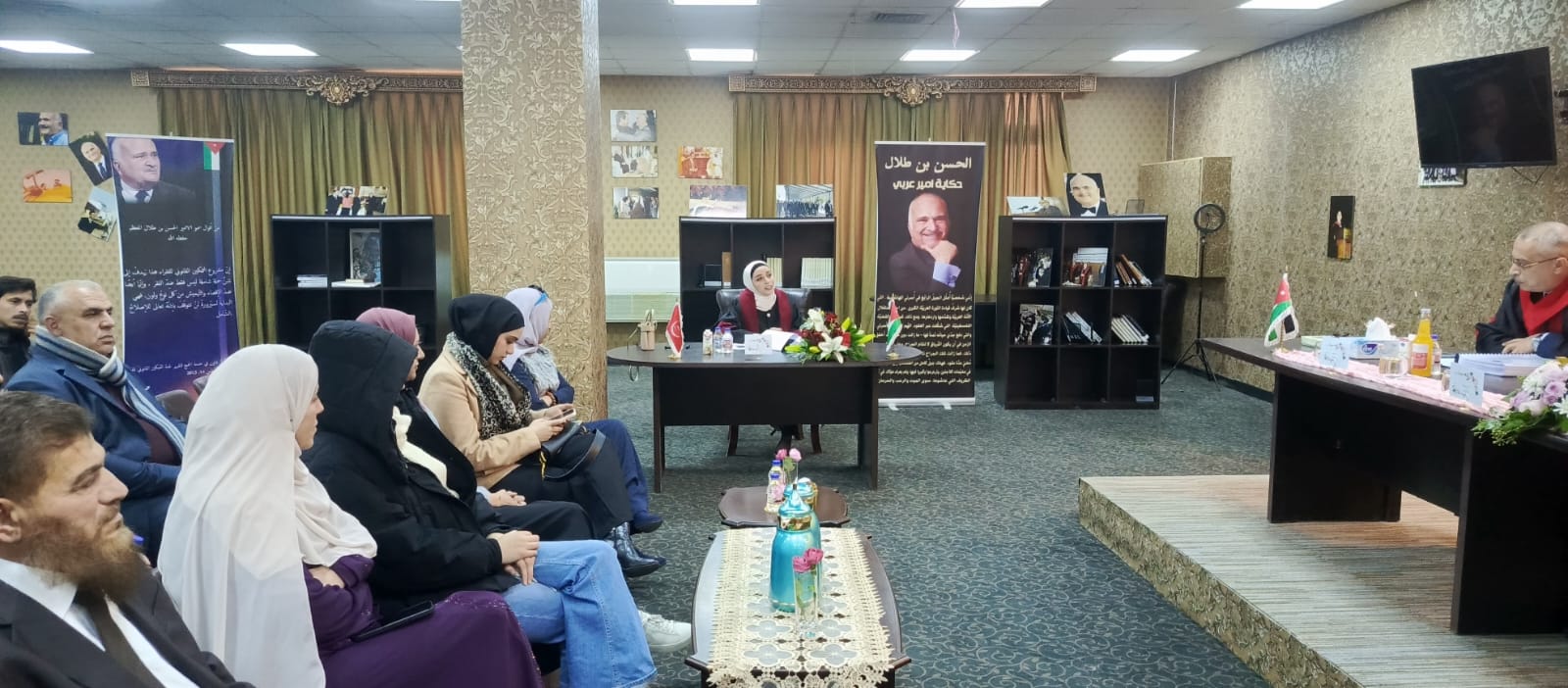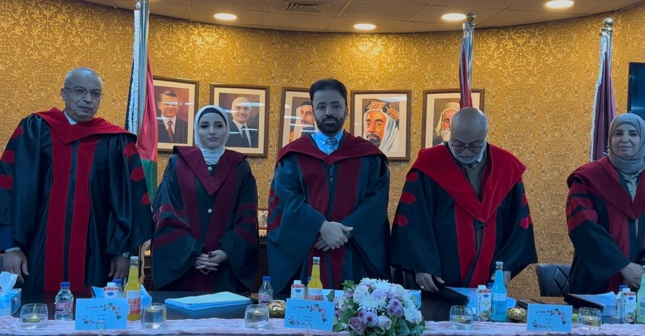 نوقشت في ركن الأمير الحسن في مكتبة الجامعة الهاشمية يوم الخميس الموافق 8/1/2026 أطروحة دكتوراه بعنوان (العنف في اللغة، دراسة في ضوء اللسانيات الاجتماعية) من اعداد الطالبة ايمان قاسميه وبإشراف الأستاذ الدكتور عيسى برهومه (رئيساً).
