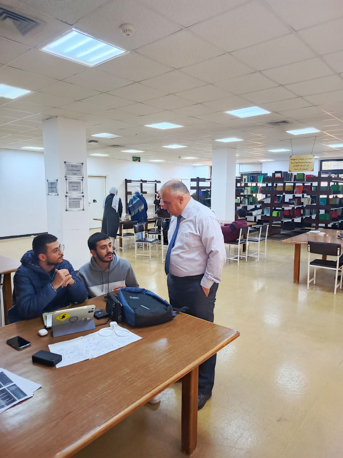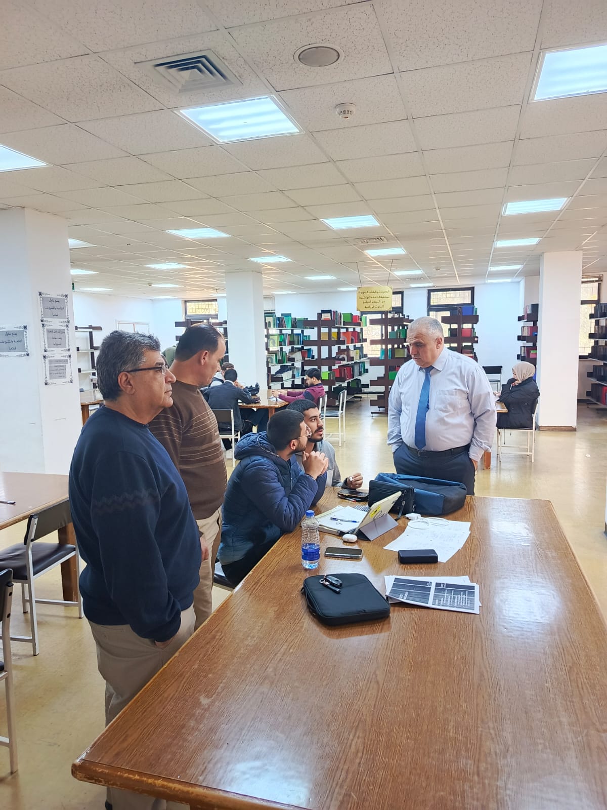 قام الأستاذ الدكتور عبد الرحمن الغويري مدير وحدة المكتبة يرافقه السيد بلال أبو ديه نائب المدير والسيد شريف الشياب مدير دائرة الخدمات، بجولة تفقديه لقاعات ومرافق المكتبة، حيث التقى بالطلبة واستمع لمقترحاتهم وتطلعاتهم المستقبلية لتحديث الخدمات المقدمة لهم خلال فترة ارتيادهم للمكتبة. وتأتي هذه الجولة بالتزامن مع انعقاد الامتحانات الجامعية النهائية للفصل الدراسي الأول للعام 2025 / 2026، حيث يرتاد المكتبة في فترة أيام الامتحانات عادةً ما يزيد عن أربعة آلاف طالب.
